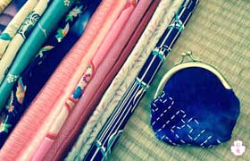 Workshop : Handmade frame purse with Sashiko on the Kimono fabric